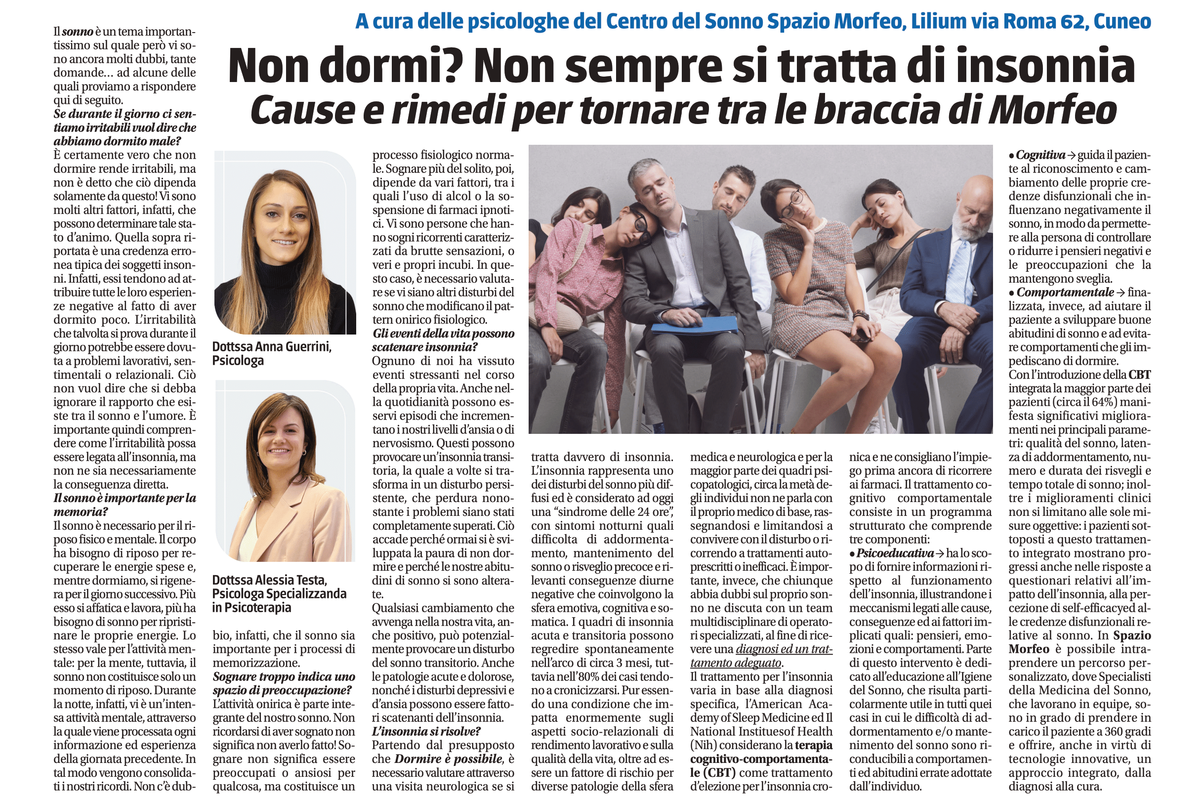 A cura delle psicologhe del Centro del Sonno Spazio Morfeo, Lilium via Roma 62, Cuneo