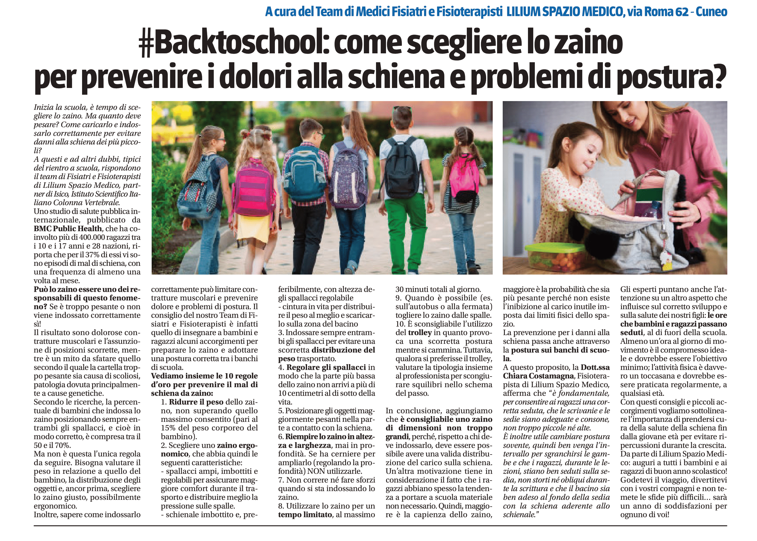 A questi e ad altri dubbi, tipici del rientro a scuola, rispondono il team di Fisiatri e Fisioterapisti di Lilium Spazio Medico, partner di Isico, Istituto Scientifico Italiano Colonna Vertebrale.