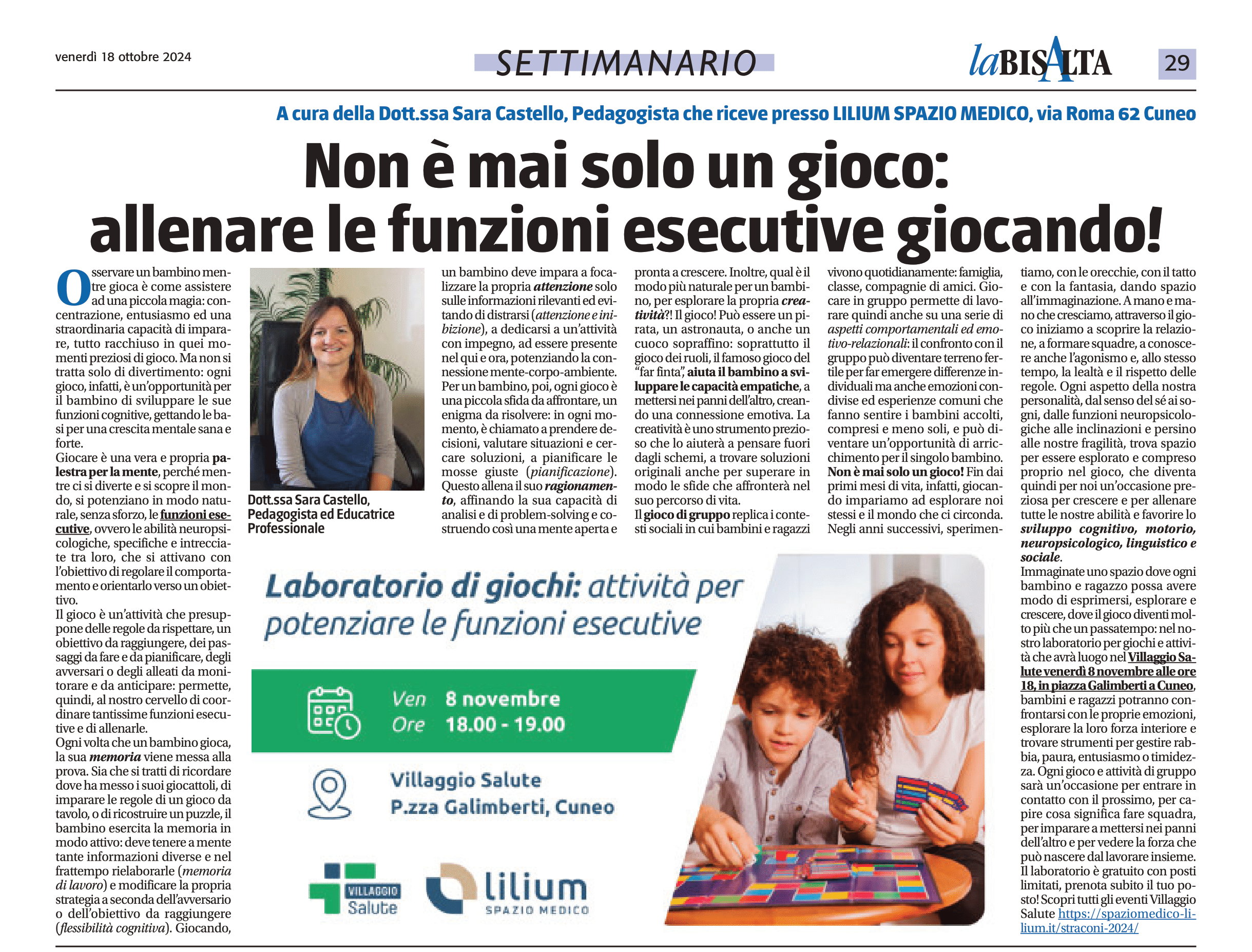 A cura della Dott.ssa Sara Castello, Pedagogista che riceve presso LILIUM SPAZIO MEDICO, via Roma 62 Cuneo