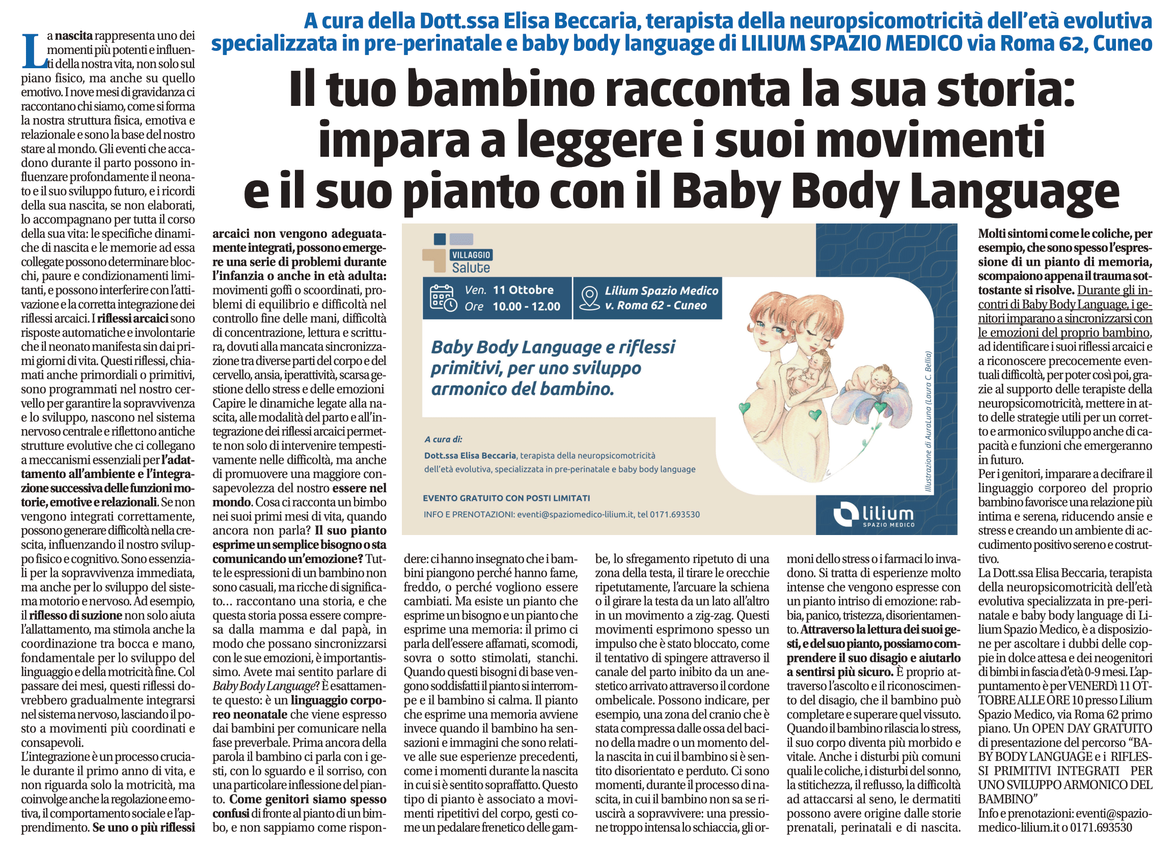 Info e prenotazioni: eventi@spaziomedico-lilium.it o 0171.693530